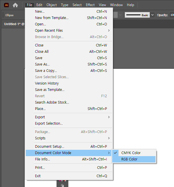 File - Document Color Mode 탭을 들어가면